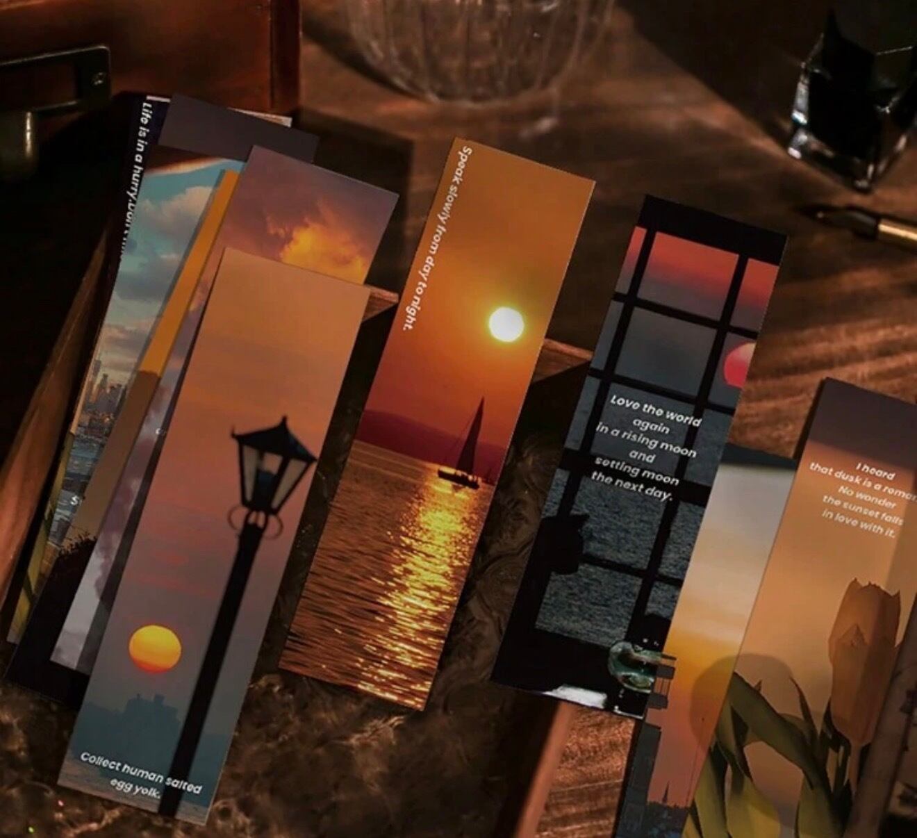 美しいサンセットをイメージしたブックマークが30枚入っています。